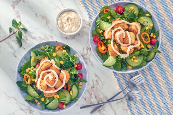 · Ensalada con palomitas de pescado