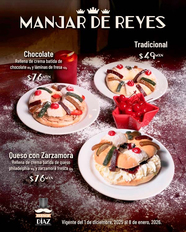 Ciudad de México.— La tradición más dulce de la temporada regresa con todo su esplendor. Buenos Díaz, la cafetería porfiriana del emblemático Hotel Geneve, ubicado en Londres 130, Colonia Juárez, presenta su exclusivo “Manjar de Reyes”, una colección de roscas artesanales inspiradas en los sabores clásicos y contemporáneos que celebran la llegada del Día de Reyes.