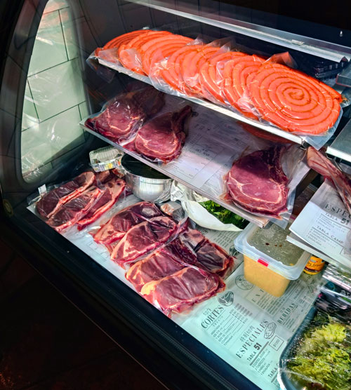 La estrella de la casa son, sin duda, los cortes de carne. Asador 51 cuenta con una selección de cortes como arrachera, rib eye, bife de chorizo, t-bone, cowboy y tomahawk, todos servidos con papas gajo y ensalada fresca. En nuestra mesa probamos un Rib Eye de 360 gramos, jugoso y con el término exacto, acompañado de ensalada de lechuga con col morada y el aderezo de la casa.