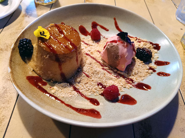 La experiencia se complementa con una carta de bebidas que incluye refrescos, limonadas, clericot, cervezas artesanales e industriales, vinos tintos y blancos, además de coctelería para todos los gustos. Como postre recibimos un flan napolitano servido con helado.