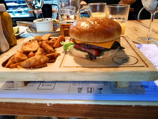 Otro platillo favorito de los clientes son la hamburguesa con carne prime de 200 gramos queso y lechuga, servida con papas de gajo.