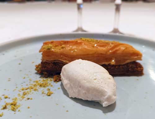 – Para terminar el chef Gerardo nos consintió con un Baklava, dulce tradicional de pasta filo con nueces y miel.