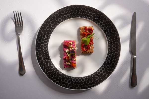 Pensando en todos los estilos de alimentación, Blanco Colima y Blanco Castelar también contarán con un menú vegetariano de Año Nuevo, que incluye propuestas como crostini de pan de grano germinado con hummus de betabel y jitomate rostizado; camote y berenjena en tempura de amaranto con espuma de curry rojo; coles de Bruselas con praliné de cacahuate; setas a la talla con arroz en vinagreta de jengibre, y un pâte de fruit de frambuesa como broche final.