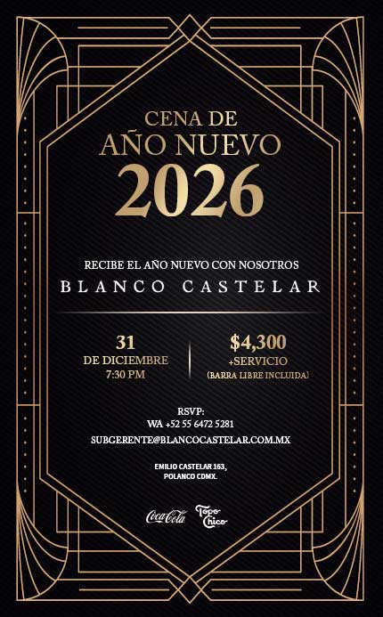 Ciudad de México.- La última noche del año merece una celebración a la altura de los grandes momentos. Este 31 de diciembre, Blanco Colima y Blanco Castelar, dos reconocidos restaurantes de Grupo Carolo, proponen despedir el 2025 con una experiencia gastronómica de Año Nuevo en Ciudad de México, diseñada para compartir en familia o con amigos alrededor de la mesa.