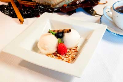 - Mole de Guayaba (creación original de la Hacienda). La guayaba, fruta originaria de Mesoamérica, aporta notas aromáticas y dulces que dialogan con el carácter especiado del mole. Esta creación contemporánea demuestra cómo el mole es una salsa viva, capaz de reinventarse sin perder su esencia. Es una de las propuestas más celebradas por su equilibrio y originalidad.