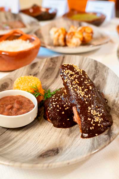 En esta primera edición, el Festival presenta la novedad de que el comensal escogerá, en primera instancia la proteína (pato, pulpo, res, etc.) y, posteriormente, alguna de las ocho variedades de mole, cada una con el toque excepcional de Hacienda de los Morales: