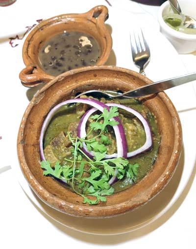 - El Chicharrón Norteño en Salsa Verde: Muy crujiente no muy picante y acompañado de frijoles y tortillas.