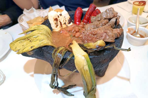 - Molcajete de Arrachera: Servido en piedra volcánica hirviente, este plato combina arrachera de primera calidad con queso asado, chistorra y cebolla cambray. Un festín carnívoro que mantiene la temperatura y el sabor hasta el último pedazo.