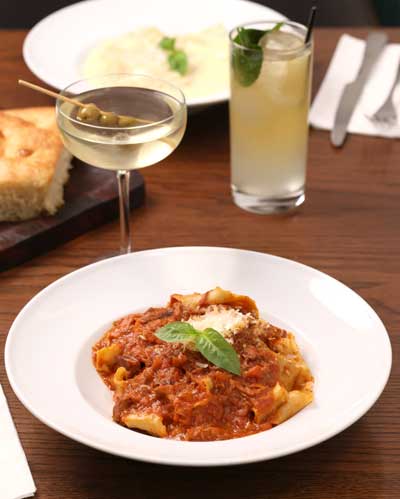 A la hora de la comida, la propuesta se vuelve más robusta sin perder su esencia para compartir. La pasta alla ruota es uno de los platillos estrella, preparada al momento y mezclada en rueda de queso, lo que aporta cremosidad, sabor intenso y un toque lúdico que la hace ideal para el centro de la mesa.