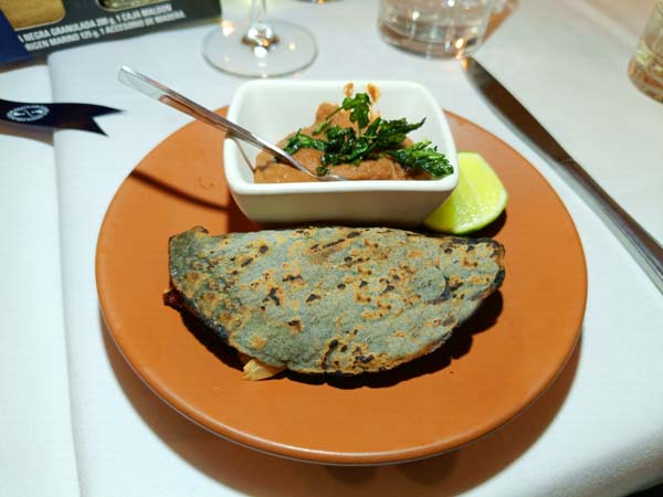 Otra sorpresa fue la Dobladita de Atún Ahumado, una reinterpretación sofisticada de la quesadilla mexicana. La tortilla de maíz nativo envuelve atún silvestre ahumado y queso gratinado, creando un bocado que equilibra tradición y técnica contemporánea.