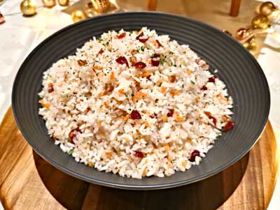 - Arroz con Verduras a la Mantequilla con Piñones y Nuez, suave y con textura crujiente gracias a los frutos secos.