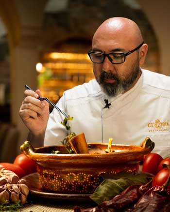Custodia Restaurante, inaugurado en mayo de 2024, celebra la riqueza gastronómica de México fusionando sabores tradicionales con procesos contemporáneos. Para la Temporada 2025 del Mole de Caderas, el chef Alan Sánchez ofrecerá un menú especial durante octubre y noviembre, que incluirá opciones como tacos dorados de requesón, sopes con tuétano, tostadas de pata, sopa de médula, mole de caderas, espinazo al ajillo y dulce de calabaza cocido con piloncillo, canela y clavo.