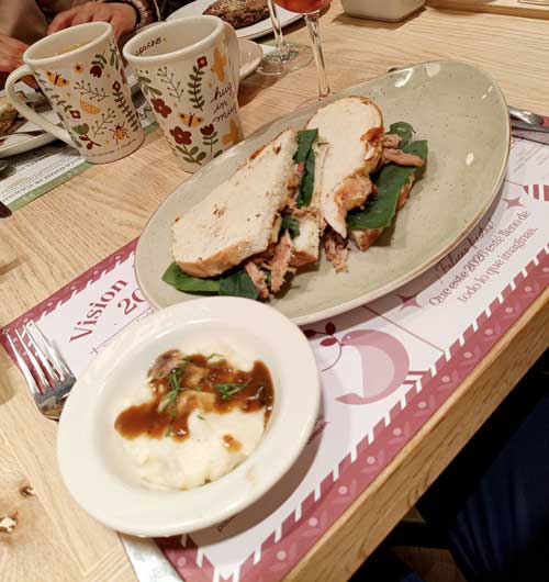 A partir de la tarde, el menú se transforma en una experiencia más amplia. La Crema Especial de Elote combina el sabor dulce del grano con una tosta gratinada que abre el apetito para platos como el Salmón Holly Jolly con salsa de mostaza y miel, o el tradicional Lomo en costra de tres chiles, horneado hasta obtener una capa aromática que se acompaña con ensalada navideña de manzana. Quienes prefieren sabores más intensos encuentran en la Picaña en salsa de ajo confitado una opción jugosa y llena de carácter, mientras que el Pollo Alfredo relleno de ricotta, espinaca y champiñones ofrece una alternativa cremosa y reconfortante.