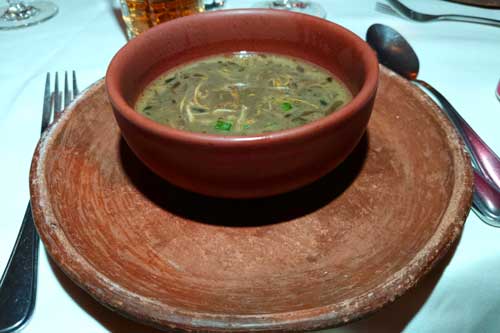 Caldo a base de jengibre, lemongrass, coco, hongos y cacahuate.