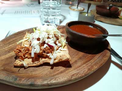 Brisket glaseado en tres chiles, acompañado de tortillas de maíz hechas a mano.